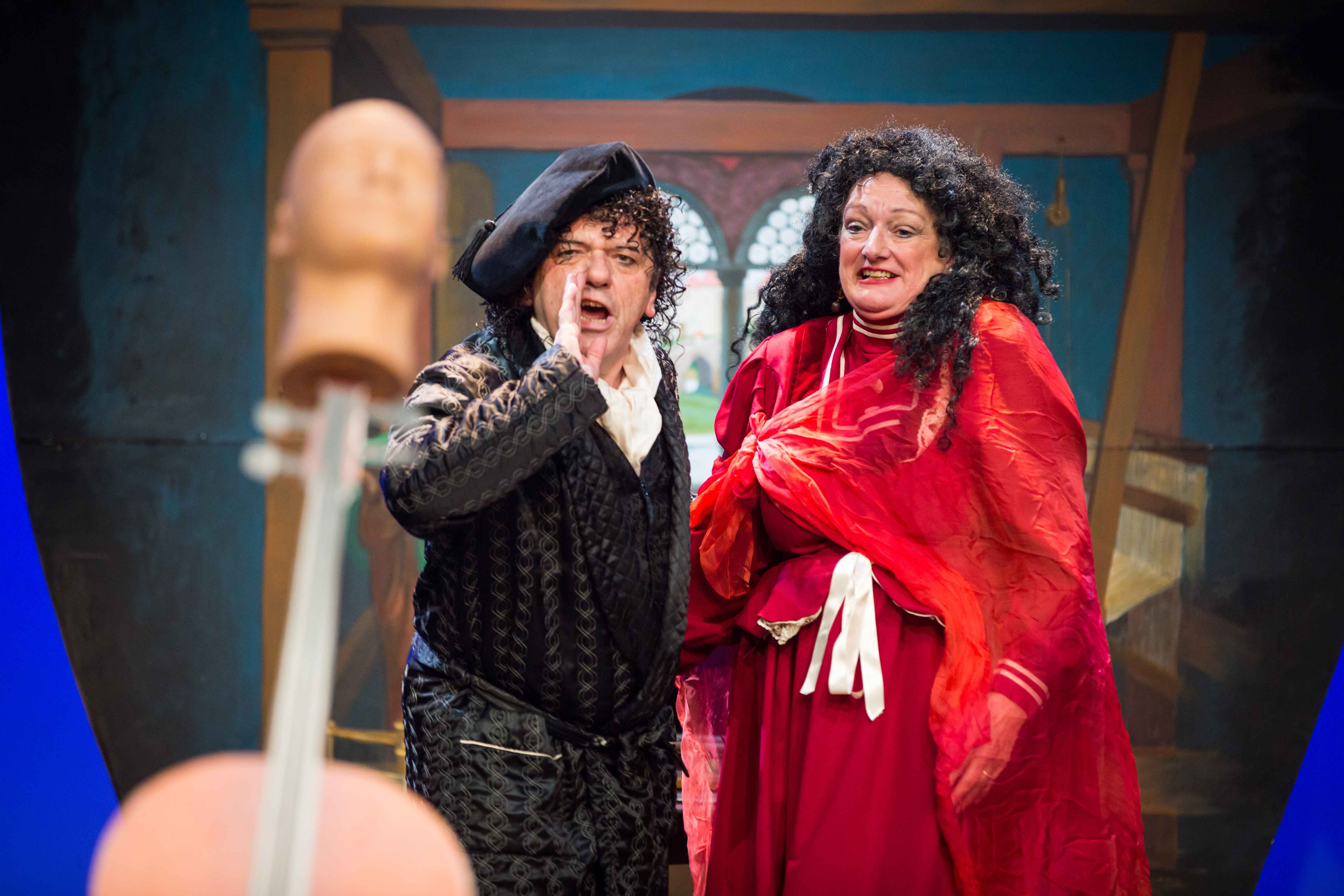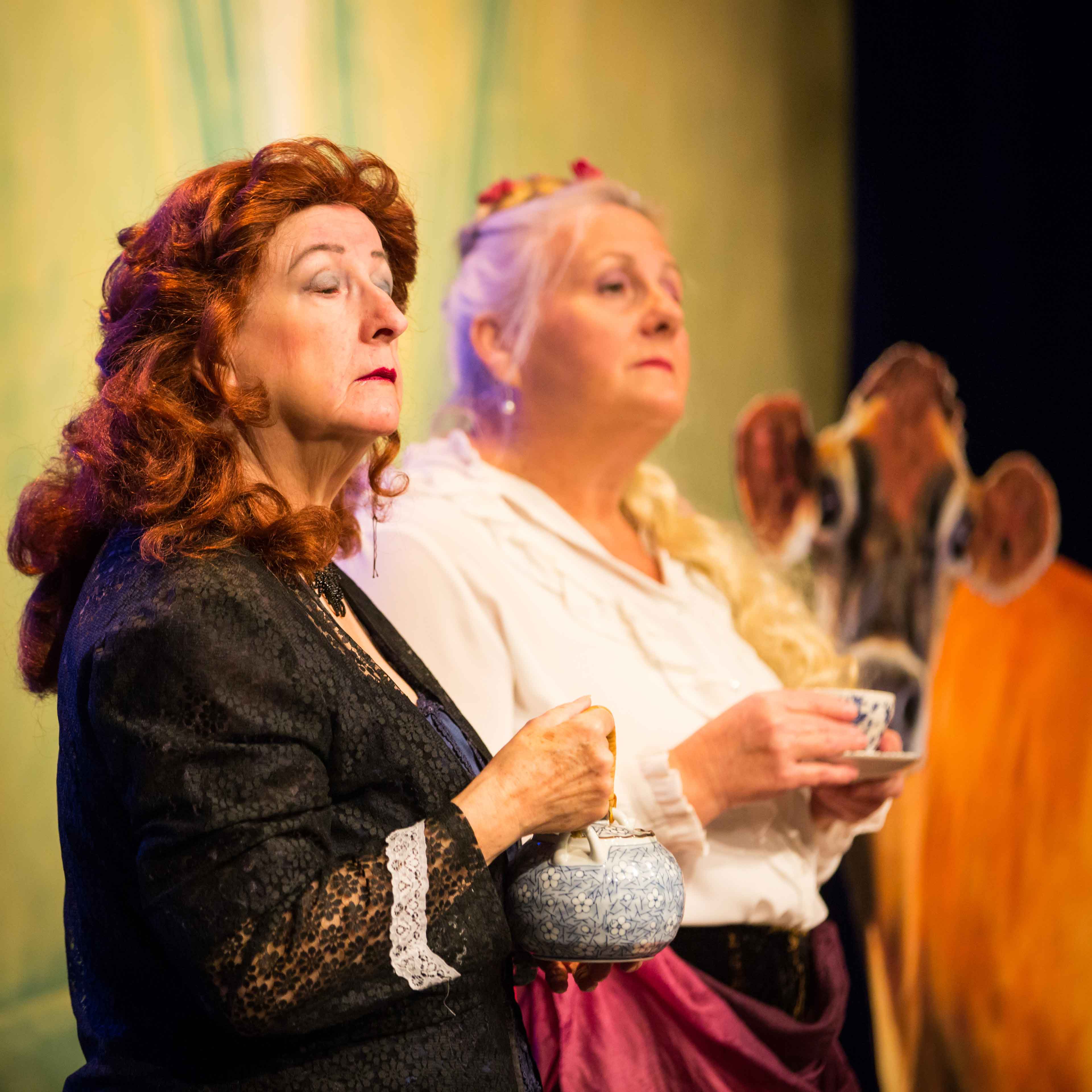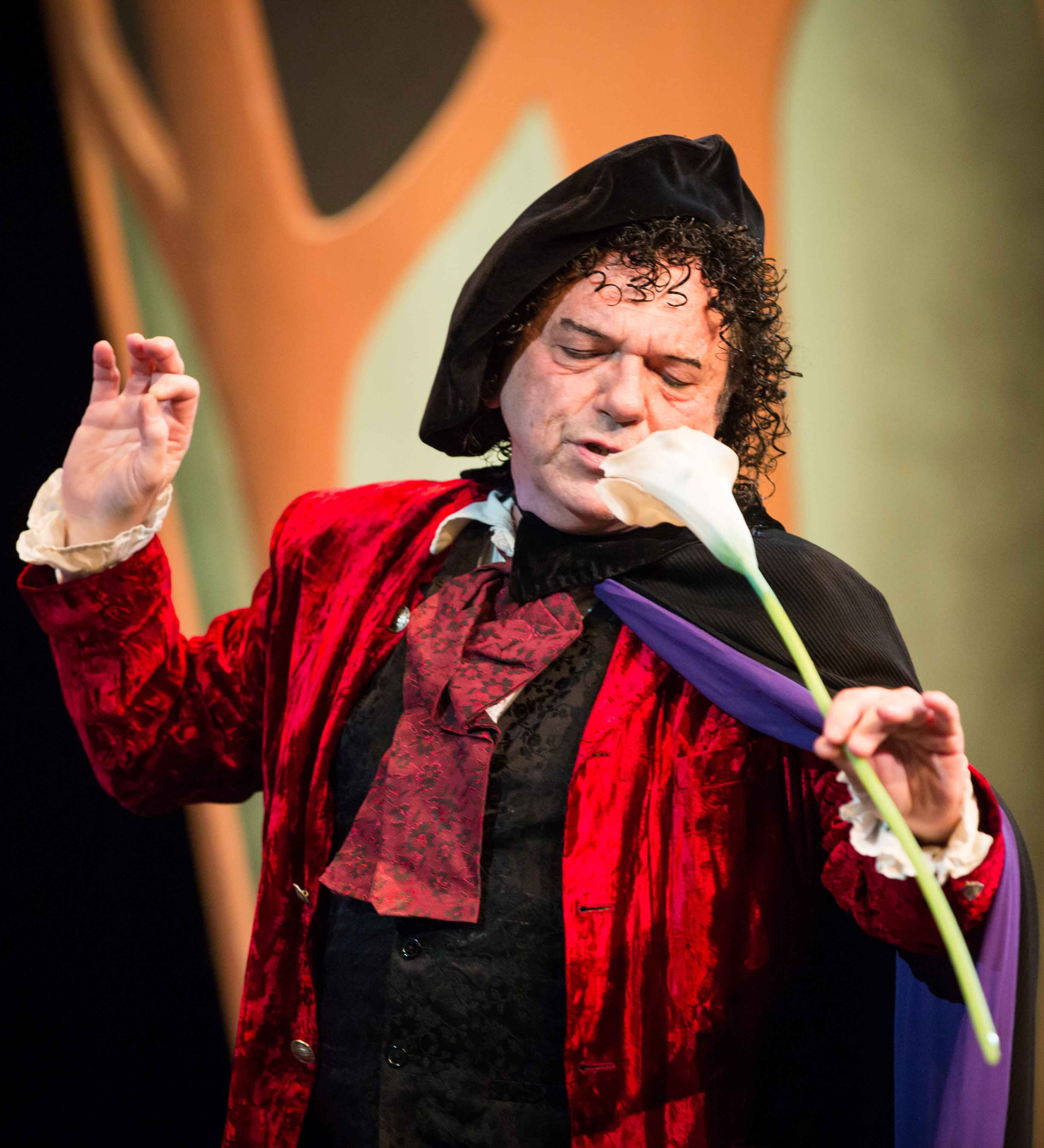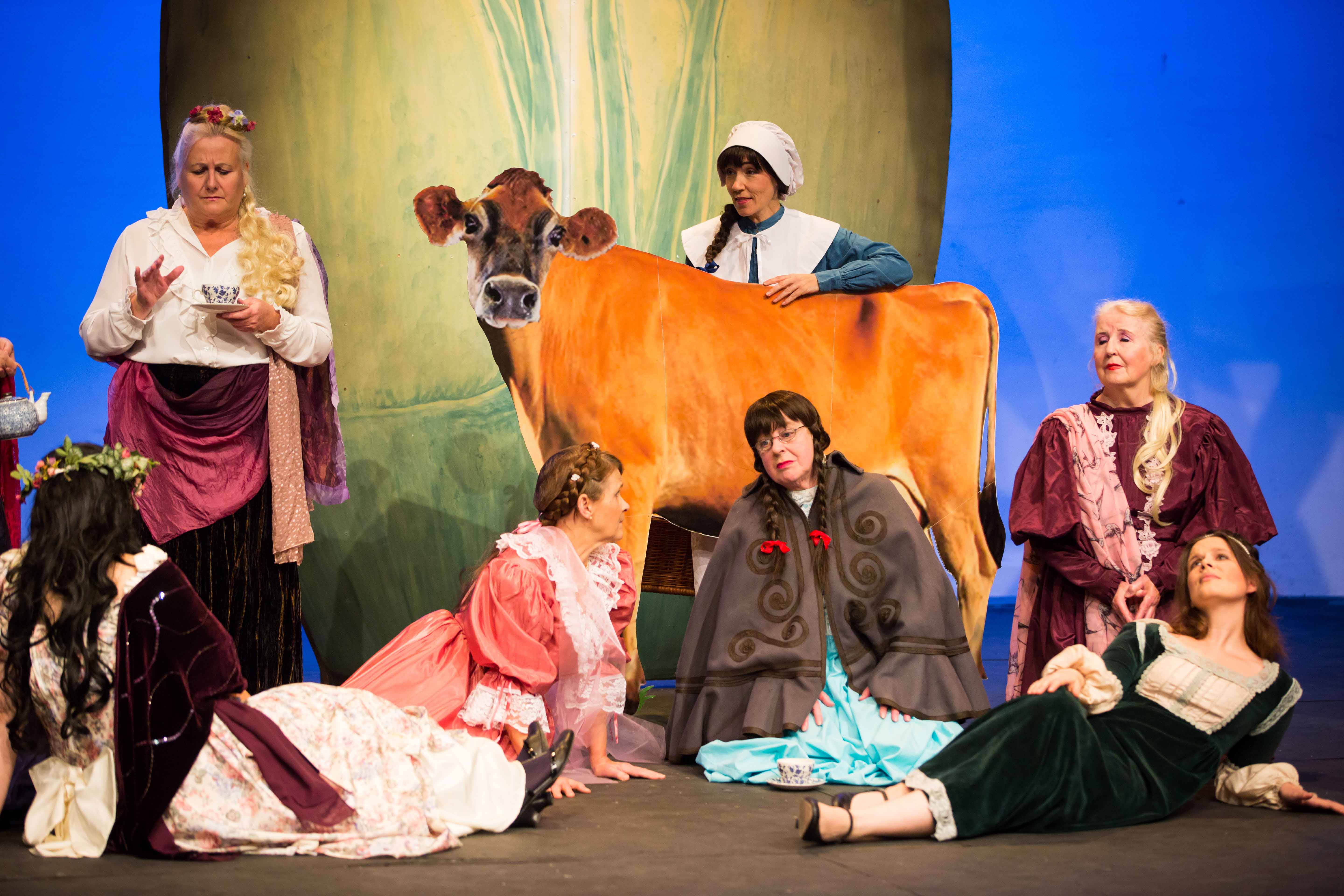 The production was distinguished by the three dimensional (Trompe-l'oeil) scenic vases created by Martin Jarvis, and the lifelike cow conveniently moved into postion when required, and which jumped over the moon!